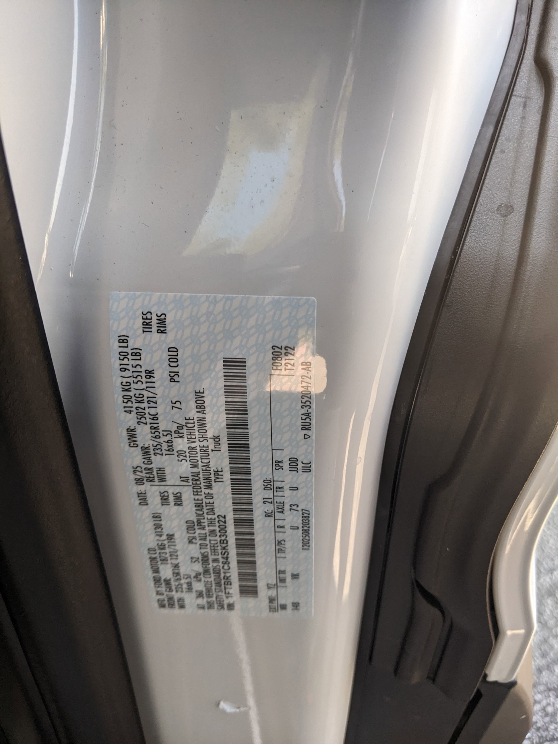 - Rear Tire Size: LT235/65SR16