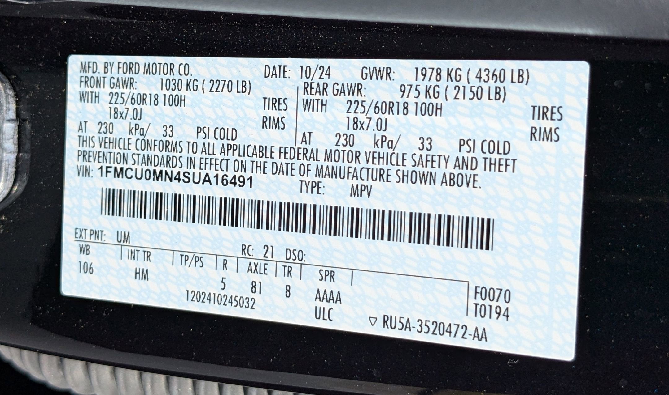 - Vehicle Name: Ford Escape
