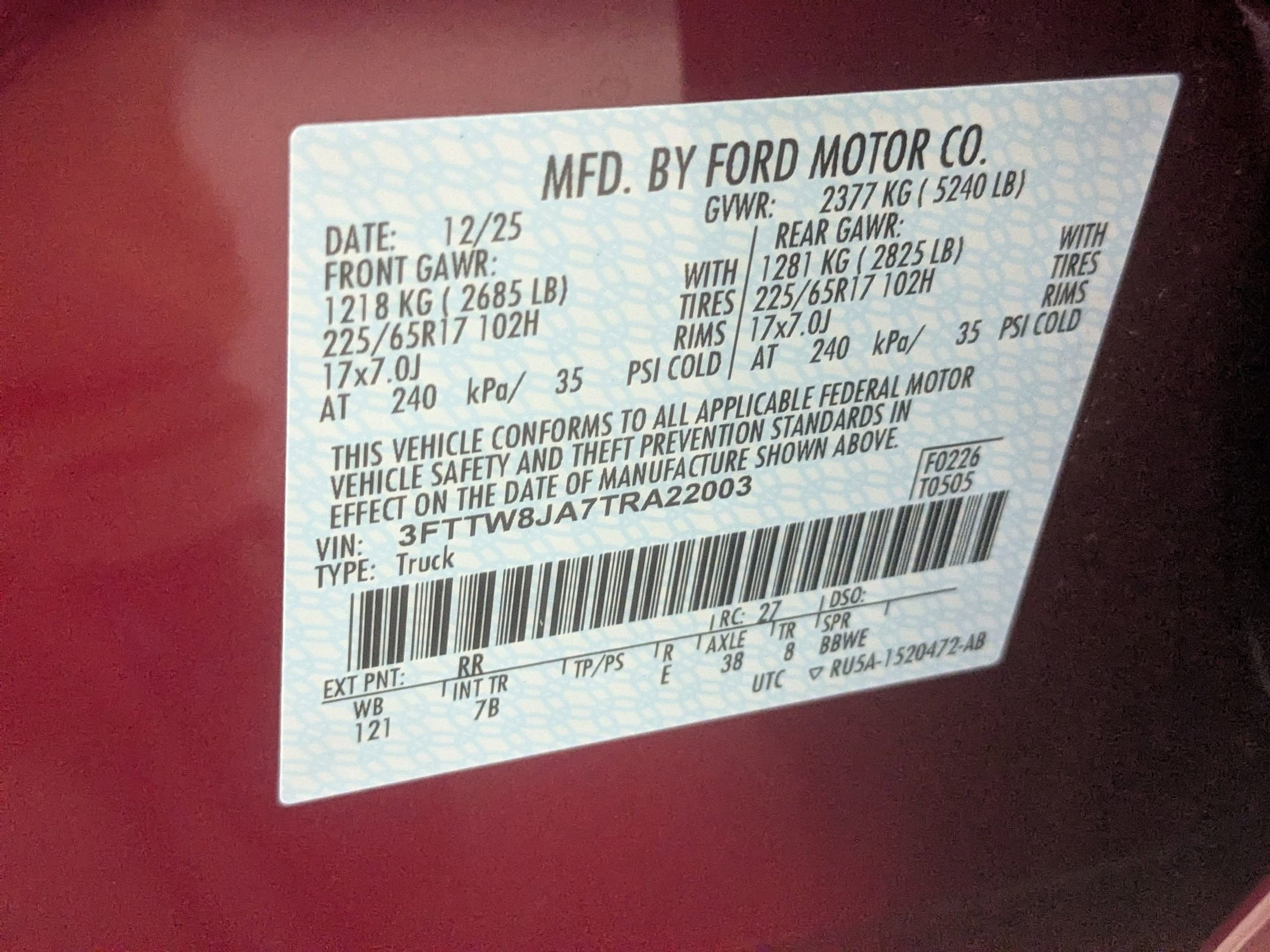 - Gross Vehicle Weight Rating Cap (lbs): 5240