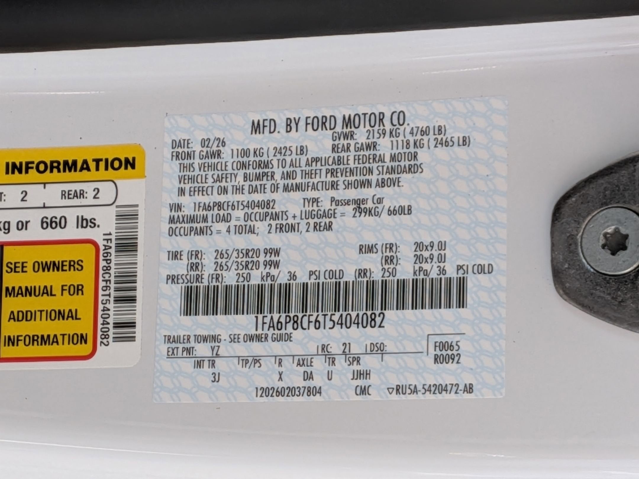 - Vehicle Name: Ford Mustang