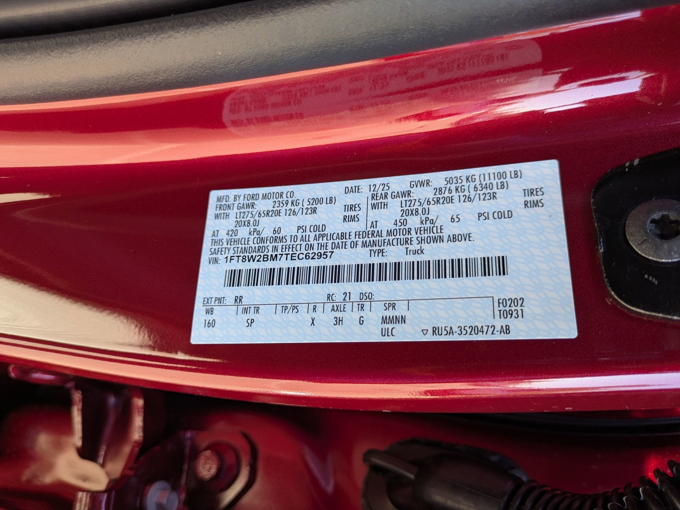 - Tires: LT275/65Rx20E BSW A/T -inc: Spare may not be the same as road tire