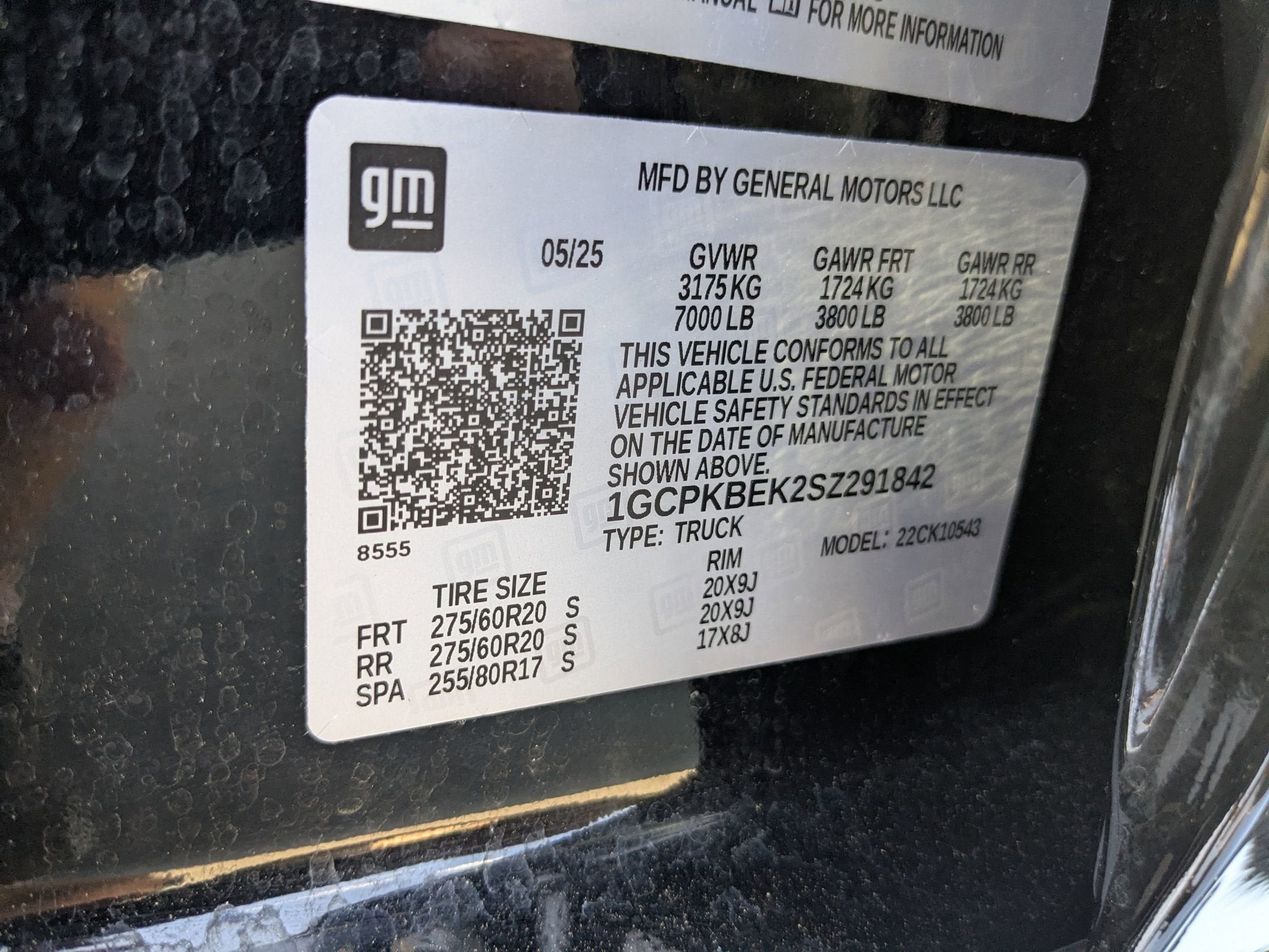 - Tires, 275/60R20 all-season, blackwall